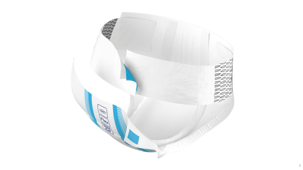 TENAフレックスは肌を覆う面積を少なく、快適性にこだわったデザイン。本体をベルトにとめるだけの簡単装着で、しっかりフィットします。